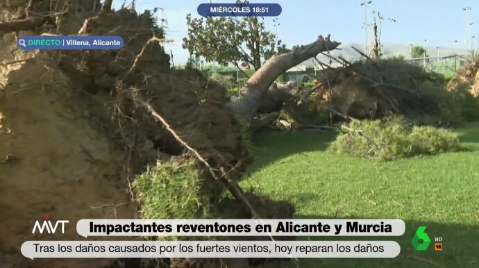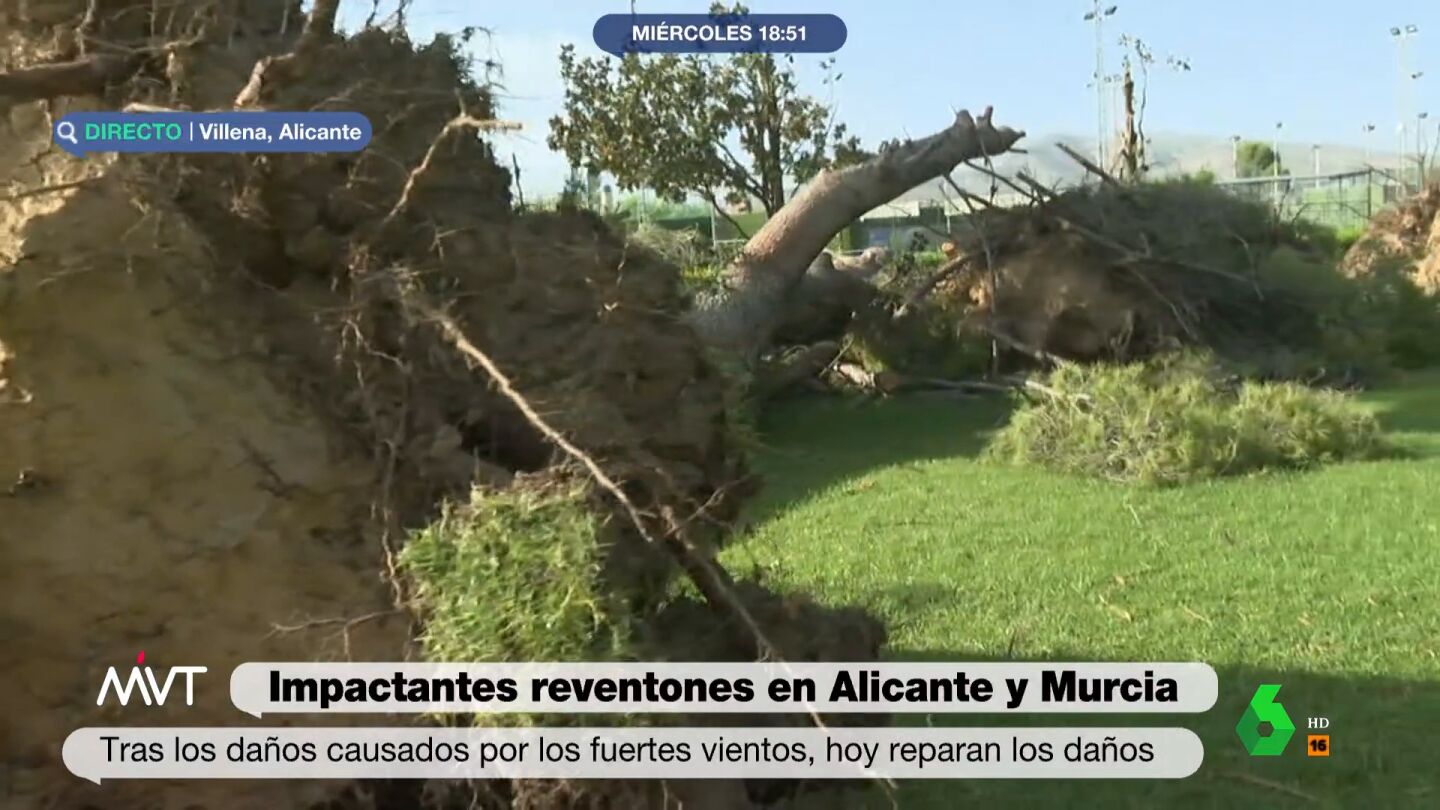Así es como se producen los impactantes reventones que arrancaron árboles de 26 metros en Alicante y Murcia