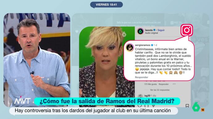 Cristina Pardo ha respondido a un mensaje dirigido a ella publicado por el futbolista en su perfil de Instagram. La presentadora ha señalado la manera en la que se ha dirigido Ramos a ella, llamándola "Cristinita".
