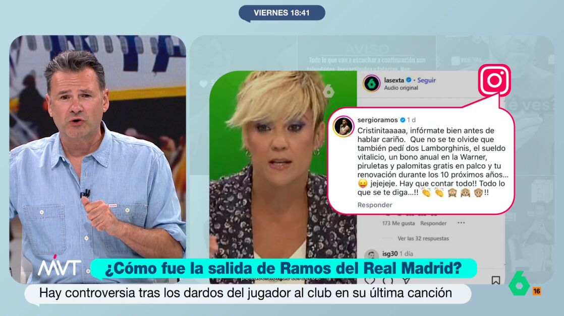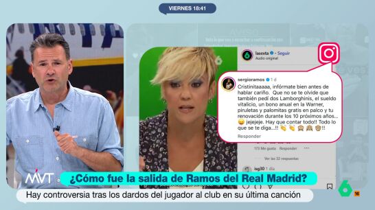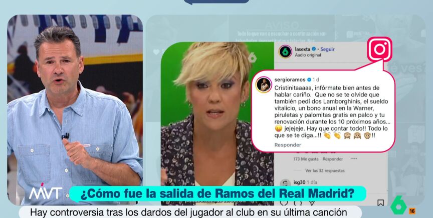 Sergio Ramos ha respondido a Cristina Pardo en su cuenta de Instagram. El futbolista se hacía eco de la información dada por la periodista en Más Vale Tarde sobre las peticiones que habría hecho Ramos al Real Madrid para quedarse en el equipo.
