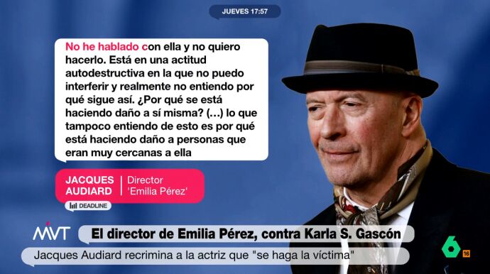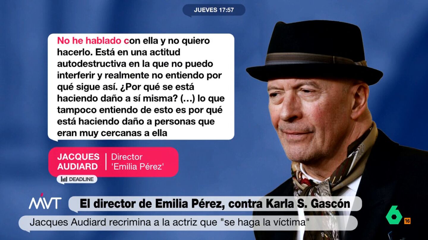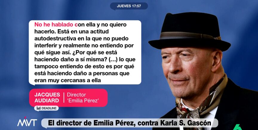 Mientras su compañera de reparto, Zoe Saldaña, acaba de expresar su decepción con todo el asunto, el director de la película, Jacques Audiard, arremetía duramente contra la actriz española, de la que aseguraba que "se está haciendo la víctima" y que sus declaraciones "son odiosas y dignas de ser odiadas".