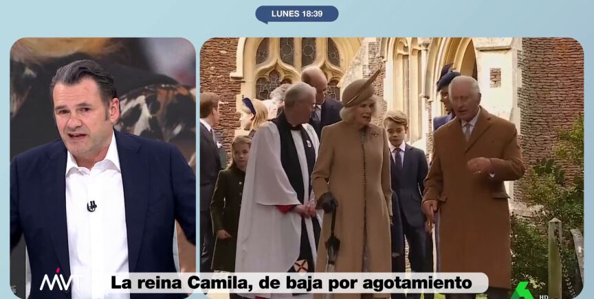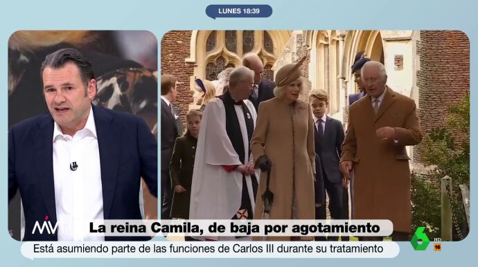 "Cuando tú y tu pareja no habéis trabajado hasta los 75...", comenta Iñaki López, que en este vídeo tira de ironía y analiza la baja por agotamiento de la reina consorte de Inglaterra, Camila, tras tres semanas asumiendo las funciones de Carlos III.