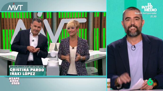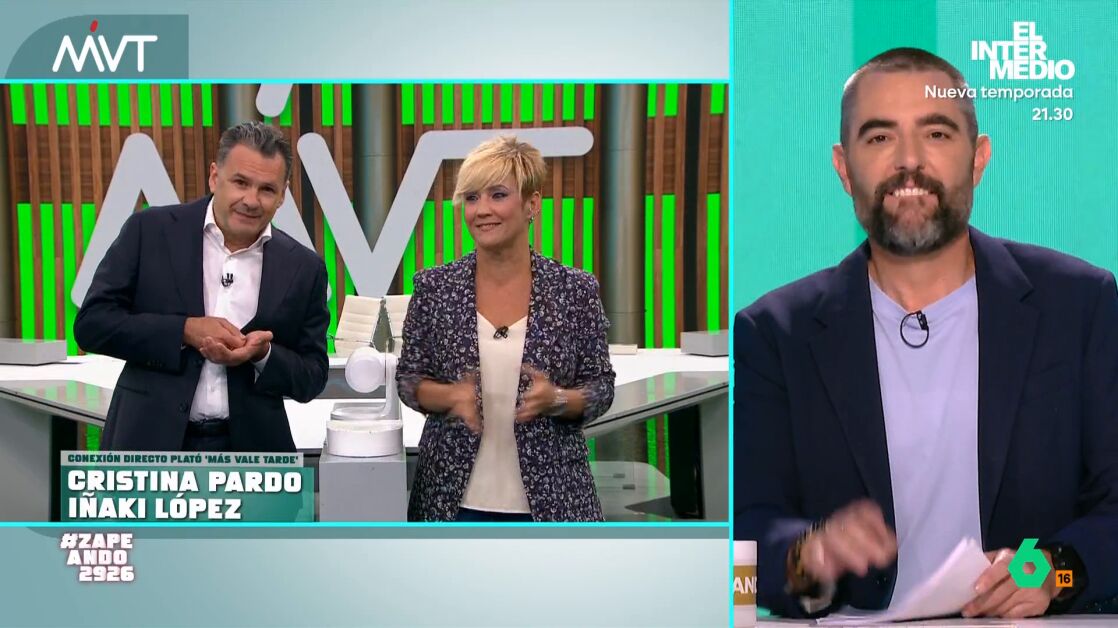 Al igual que Mateo, Iñaki López y Cristina Pardo también se han reincorporado a su puesto frente a Más Vale Tarde después de su parón vacacional. El presentador de Más Vale Tarde comienza lanzando pullas contra los zapeadores. El presentador afirma que dudan que se hayan ido de vacaciones ya que todos tienen un color "lívido".