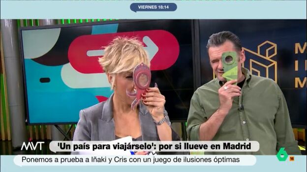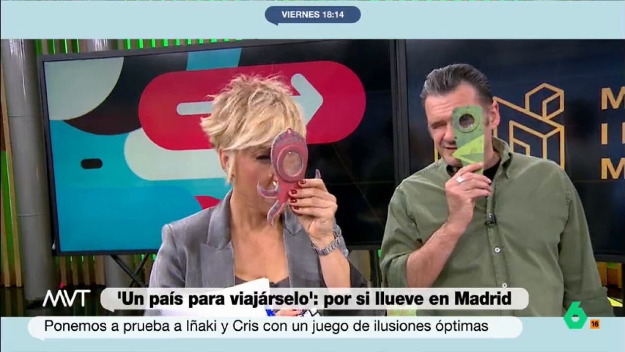 Luis Calero ha visitado El Museo de las ilusiones, en Madrid, y ha traído tres regalos a los presentadores de Más Vale Tarde: un cubo de Rubik y dos visores que permiten ver como un pulpo o un saltamontes.