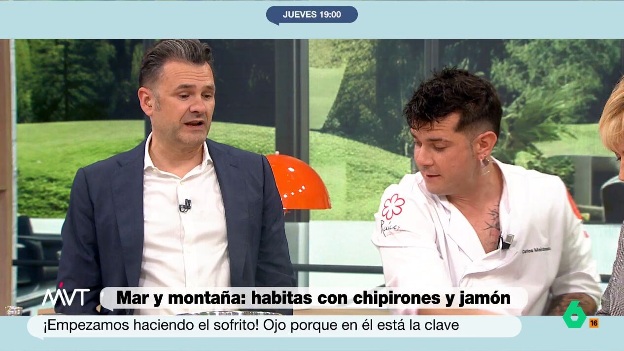 "Aprovecho para preguntar ahora porque luego me va a pillar comiendo", le dice el presentador de Más Vale Tarde al chef, después de plantear su pregunta.