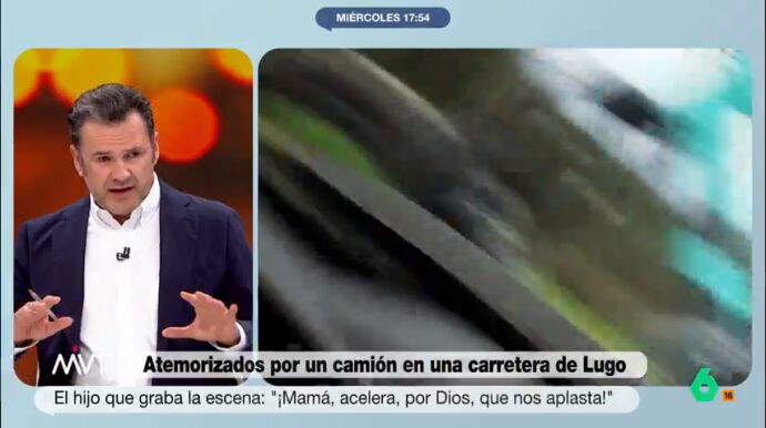 "Nada, por muchas pirulas que te hagan, justifica que tú, con un camión de 40 toneladas y varios ejes, juegues con la vida de una familia", afirma, tajante, Iñaki López. El presentador apunta que el camión "golpeó al coche, lo acosó y podría haberlo sacado de la carretera y provocar la muerte de sus ocupantes".