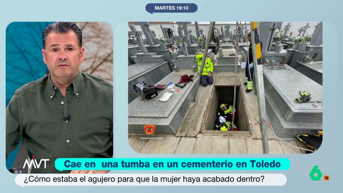 Iñaki López y Beatriz de Vicente comentan en este vídeo el rescate de una mujer de 46 años que se cayó a una fosa de cuatro metros en el cementerio de Navahermosa, en Toledo. Iñaki recuerda que "las tumbas suelen tener dos metros".