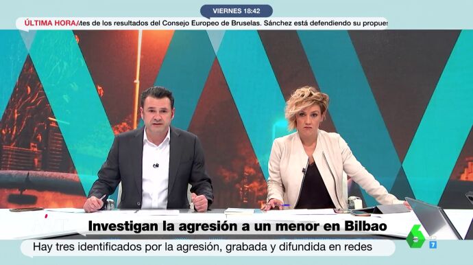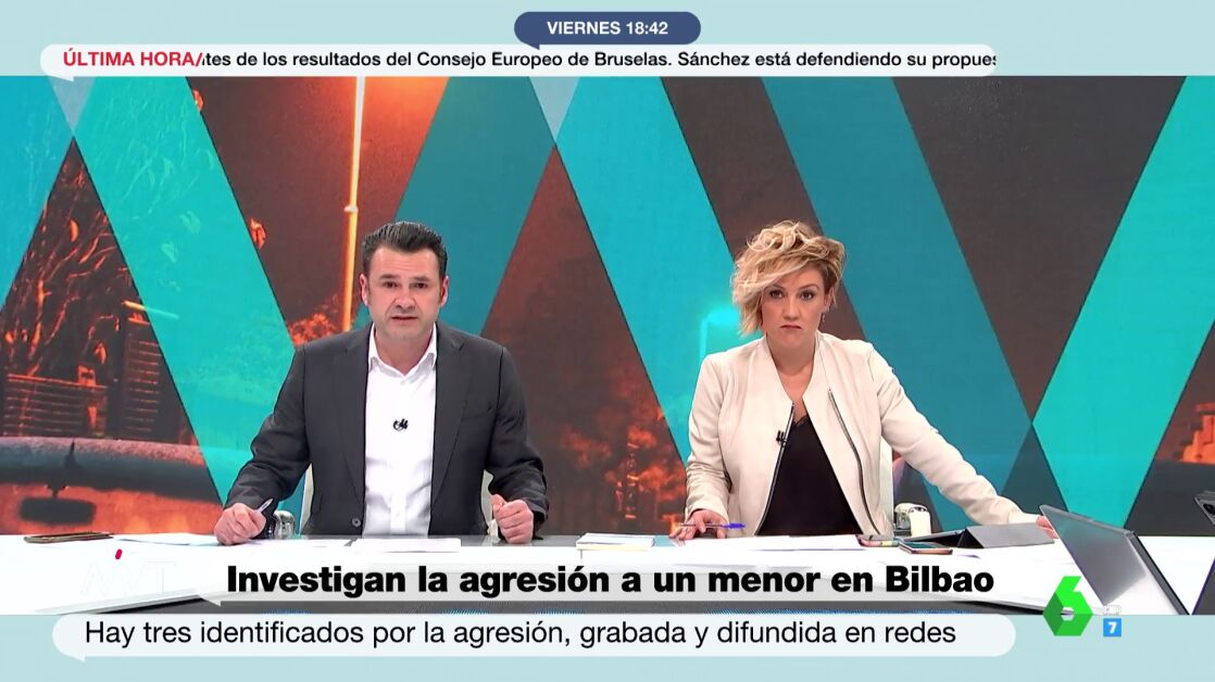 Cristina Pardo e Iñaki López se han mostrado indignados en Más Vale Tarde con la agresión por parte de unos adolescentes de entre 14 y 15 años a un menor de 13 años en Bilbao. "Estos niños tan cafres ya han sido afortunadamente identificados por parte de la Ertzaintza, y la familia de la víctima ya ha puesto una denuncia que espero de verdad que prospere para que estos niños aprendan, y también sus padres, quienes también son responsables de que estos niños tengan un comportamiento tan absolutamente lamentable", ha expresado el presentador.