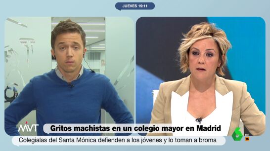 El líder de Más País denuncia los cánticos misóginos dados en ese colegio mayor de Madrid, que es "un sitio para niños pijos, cuyos padres pagan 1.200 euros al mes y del que posiblemente sale una buena parte de los cuadros de mando en la sociedad española que se educan en la violencia contra las mujeres, en el racismo, en el fascismo".