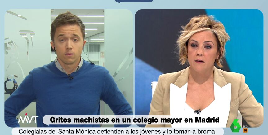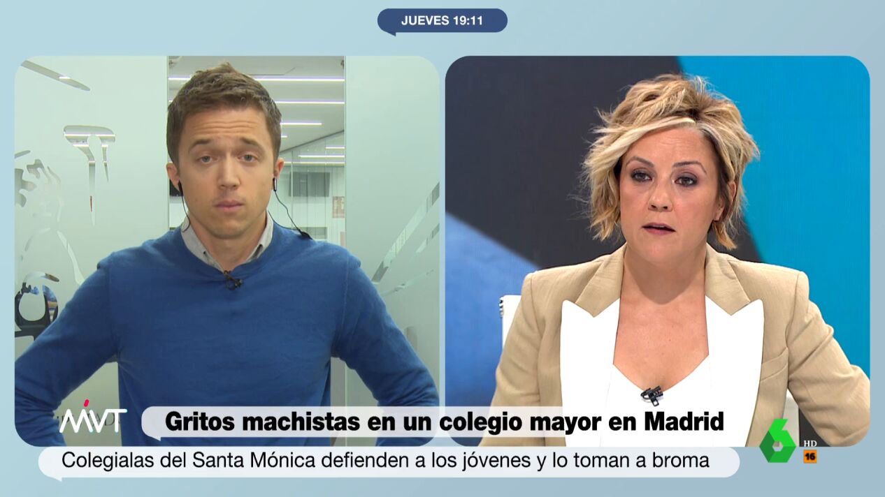 Algunas de las residentes del Colegio Mayor Santa Mónica al que iban dirigidos los cánticos misóginos y machistas realizados por los internos del Elías Ahujahan salido a defender a sus compañeros, asegurando que "no hay que tomárselo a lo personal" y que son sus "amigos". Unas palabras que, para Íñigo Errejón, no zanjan en absoluto lo que ha ocurrido: "Esto no es un asunto privado. No va de cómo se lo han tomado ellas. Va de que en las universidades, en los colegios mayores, en los espacios públicos de estudio, no podemos tolerar la cultura de la violación. No hace gracia bromear sobre violar a chicas, no hace gracia gritar que todas las chicas son unas putas".