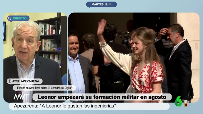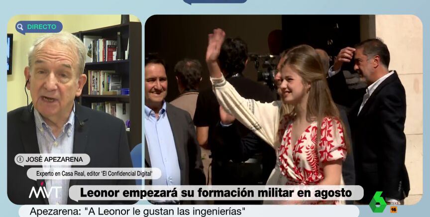 La princesa Leonor ha sido noticia este martes tras el anuncio de la ministra de Defensa, Margarita Robles, del comienzo de su formación militar a partir de septiembre. Para conocer algo más la figura de Leonor, en Más Vale Tarde hablamos con el experto en Casa Real José Apezarena, que comenta las "inquietudes" intelectuales que tiene.