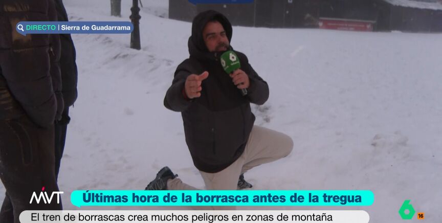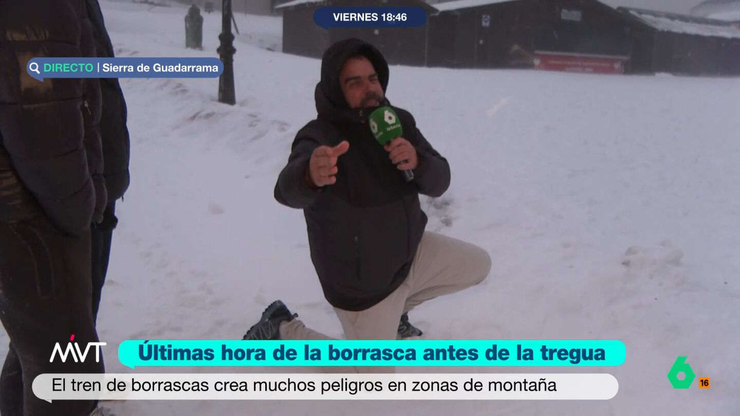 Ante la incredulidad de los que estaban en plató, Iñaki López, Cristina Pardo y Joanna Ivars, Bastida se ha "hincado rodilla" en la nieve, para escribir la identidad de esa misteriosa persona, admitiendo que podría "crear confusión entre muchos". En este momento, Pardo ha insistido en conocer el tiempo ante lo que el reportero ha espetado entre risas: "Ya te lo he contado. Que me está dando en la cara, que me quiero morir".