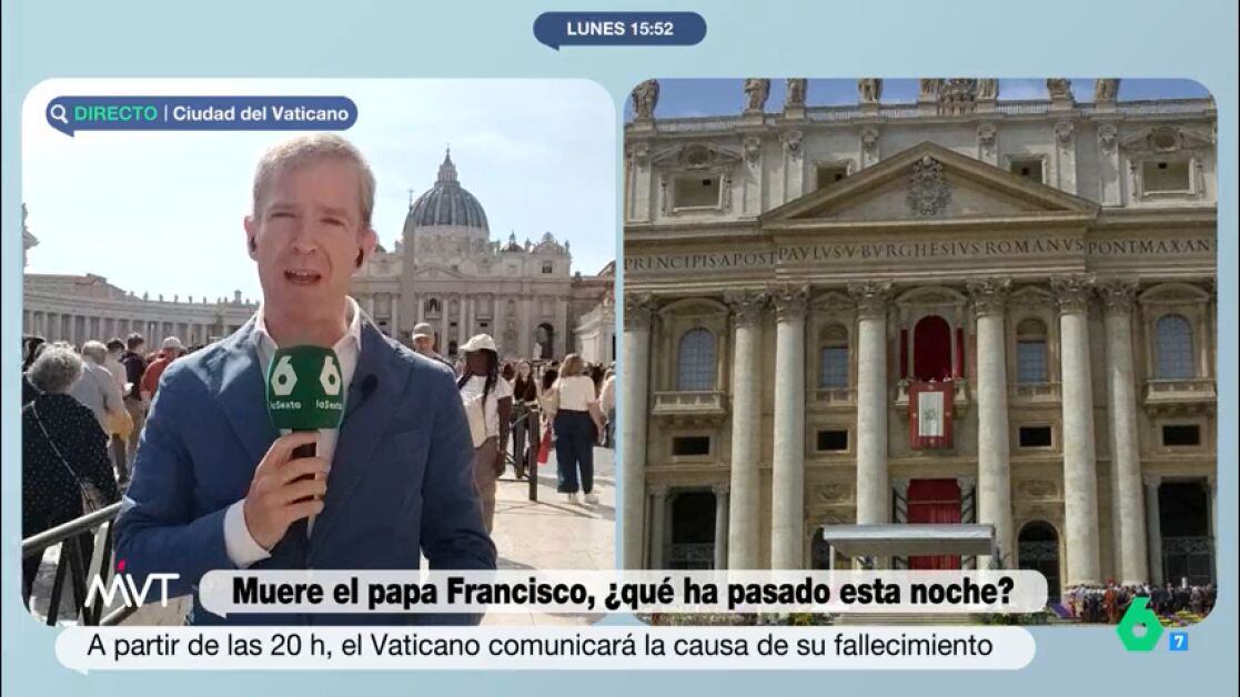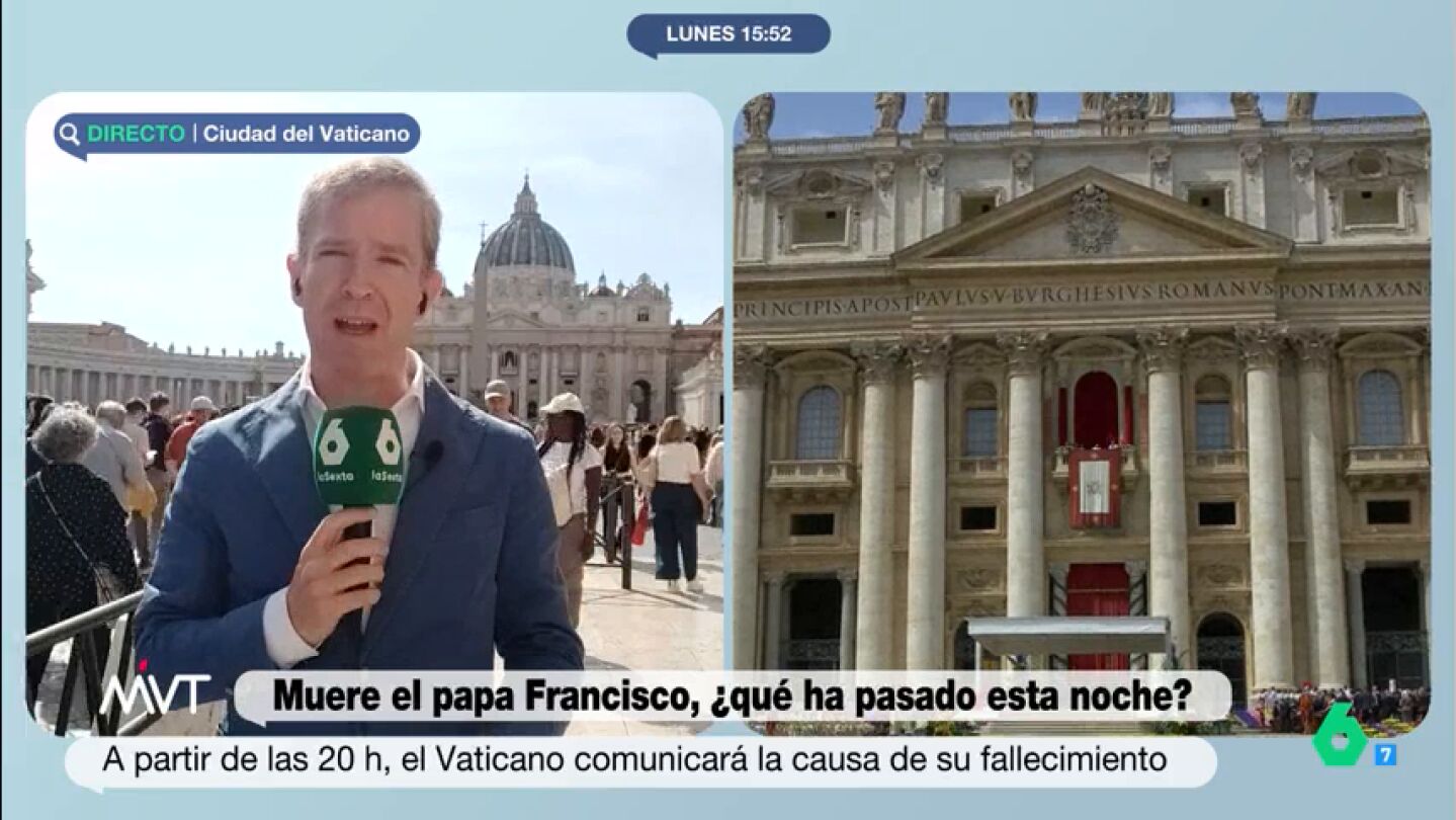 El papa Francisco ha fallecido con 88 años. Más Vale Tarde conecta con Javier Martínez-Brocal, corresponsal situado en la Ciudad del Vaticano, para conocer la última hora del suceso. Como explica, el papa, "después de 38 días en el hospital y tres semanas de convalecencia, a las 7:35 h de la mañana ha fallecido".