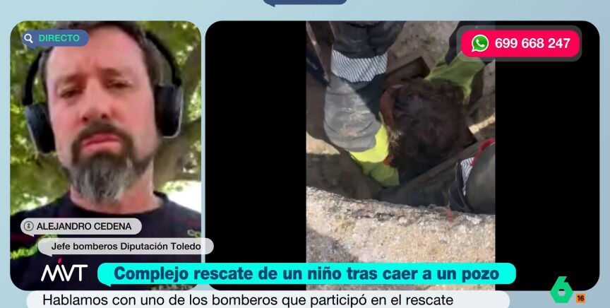 Así lo ha asegurado uno de los héroes e implicados en este duro rescate que se alargó durante más de dos horas. Nos referimos al jefe de bomberos de la Diputación de Toledo, Alejandro Cadena, que ha estado este lunes en Más Vale Tarde. "Hablábamos con él. El niño estaba consciente y respondía a estímulos, aunque lloraba", ha contado.
