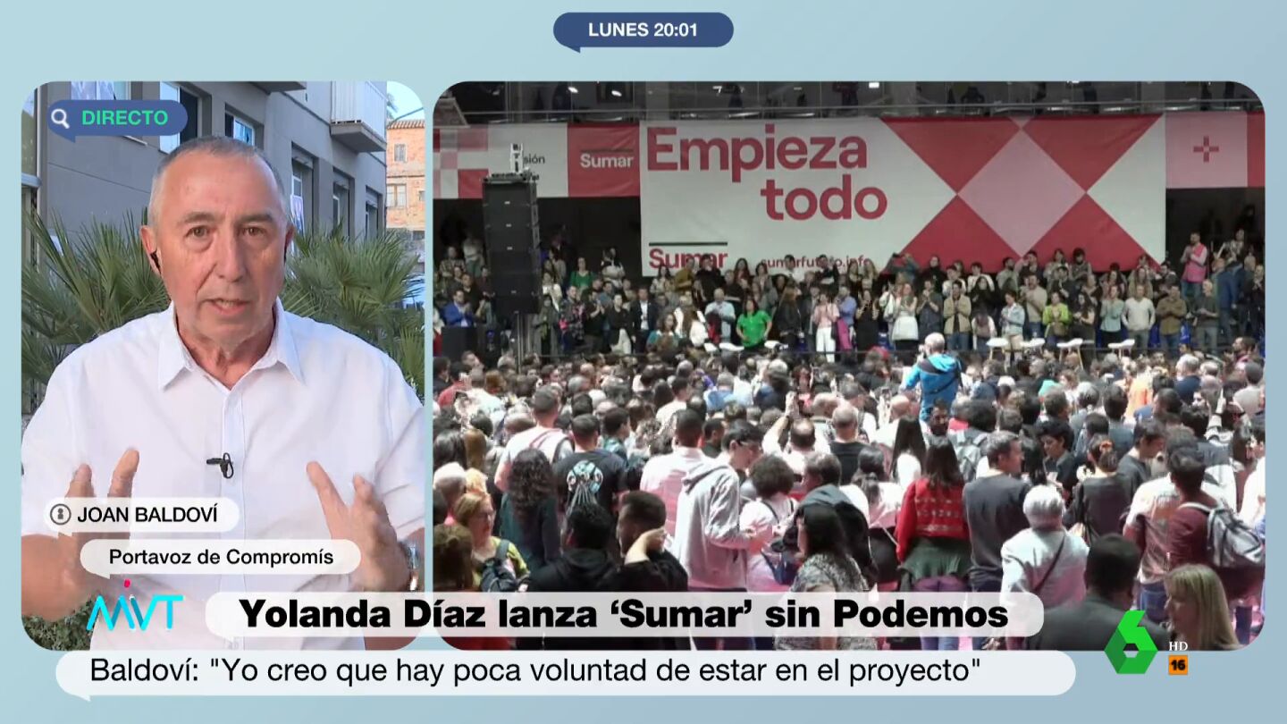 "Creo que hay poca voluntad de estar en este proyecto. Creo que en lugar de rebajar tensiones, se ha querido entrar en polémicas", lamenta Baldoví, que insta a Podemos a entrar en Sumar "en igualdad de condiciones" con el resto.