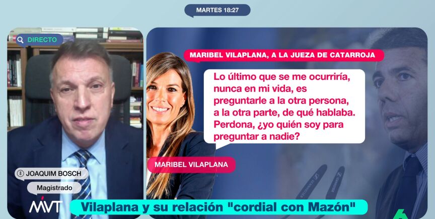 Joaquim Bosch analiza en Más Vale Tarde la declaración de Maribel Vilaplana ante la jueza que investiga la gestión de la DANA donde, según él, la periodista "dijo asépticamente que no escuchó absolutamente nada" de las conversaciones de Mazón desde El Ventorro.