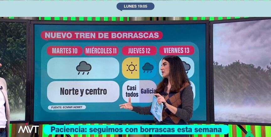 Ivars señaló que el jueves 12 será un día de transición. "En casi toda España habrá sol, menos en Galicia, donde se esperan las precipitaciones", comentó. Por su parte, el viernes 13 entrará la borrasca más importante de la semana en la península, que todavía no tiene nombre, pues se desconoce si será de alto impacto o no. En esta ocasión, lloverá a lo largo del día en el norte, centro y sur del país.
