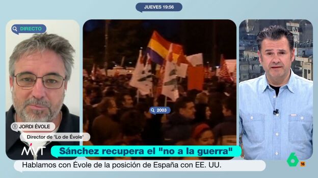 Évole tiene claro que la guerra debe ser "el último recurso". El periodista indica que esto no significa que esté a favor del régimen iraní. "Lo que estoy esperanzado es que el gran potencial que tiene este país es ganar el Mundial de Fútbol Masculino en Estados Unidos", señala el periodista, "eso sería un momento mágico". Además, considera que sería "poesía" ver a Trump entregara la copa del mundo al capitán de la Selección Española. Iñaki López señala que quizá Donald Trump no nos deja participar. "No creo que a Infantino le interese mucho no tener a España en el mundial", apunta Évole.