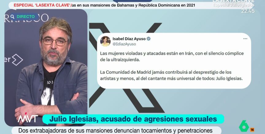 Jordi Évole, tras defensa de Ayuso a Julio Iglesias: "Me parece casi insultante que se permita hacer un tuit como ese"