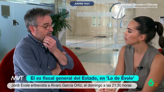 Évole señala que García Ortiz, durante la entrevista, insiste en la idea de que hay que confiar en la justicia, "y que él confía en la justicia". "Es consciente del cargo que ha ocupado, sabe la responsabilidad que ha tenido y, también, hace un ejercicio de intentar explicar qué es la Fiscalía en cuanto a su dependencia del Gobierno", añade el periodista.