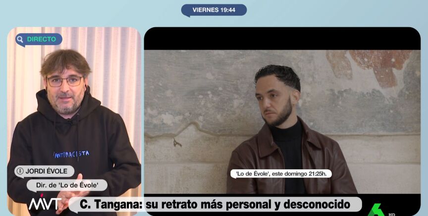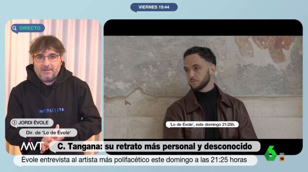 Lo de Évole regresa este domingo a las 21:30 horas con la entrevista de Jordi Évole a C. Tangana. Pero, ¿por qué el músico para inaugurar esta nueva temporada? El presentador explica en Más Vale Tarde que "es un personaje muy interesante" y "seguramente el artista más influyente que ha tenido este país en los últimos años junto con Rosalía". "A nivel musical, la influencia ejercida tanto por Rosalía como por C. Tangana ha sido innegable", sostiene.