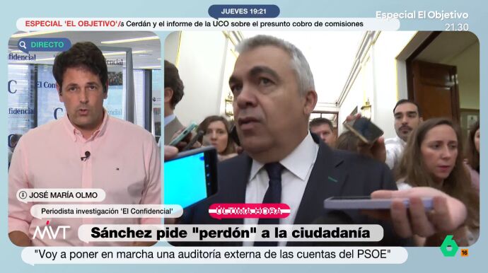 Iñaki López y Cristina Pardo analizan el informe de la UCO sobre Santos Cerdán con el periodista de 'El Confidencial' José María Olmo, que considera que las informaciones que se han conocido hasta ahora "van mucho más allá de Santos Cerdán" y afectan a "la legitimidad de Pedro Sánchez para ser líder del PSOE".
