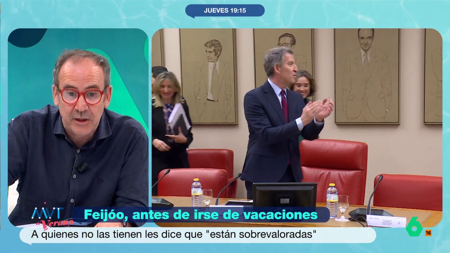 El líder popular, durante una rueda de prensa, ha hecho un chascarrillo frente a los periodistas afirmando que las vacaciones "están sobrevaloradas". Gabriel Rufián o el ministro socialista no han dudado en responder al comentario de Feijóo.