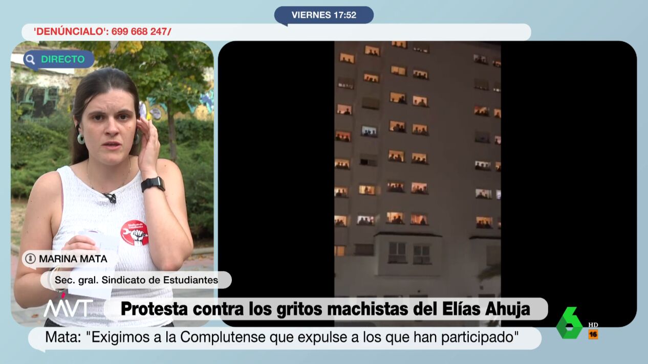 "No es una novatada, es una manada de machistas y agresores sexuales en acción lanzando un mensaje de que se nos puede violar y agredir y no pasa nada porque no los tomamos como un chiste". Con estas contundentes declaraciones ha denunciado lo ocurrido en el Colegio Mayor Elías Ahuja la secretaria general del Sindicato de Estudiantes, Marina Mata.