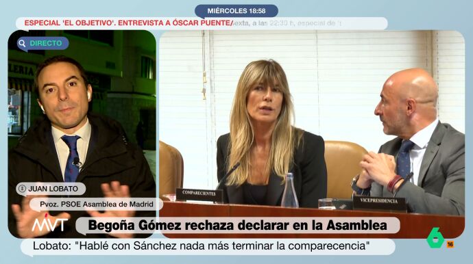 Juan Lobato, portavoz del PSOE en la Asamblea de Madrid y 'anfitrión' de Begoña Gómez hoy en la comisión de investigación, explica en Más Vale Tarde los detalles de la comparecencia de la mujer de Pedro Sánchez.