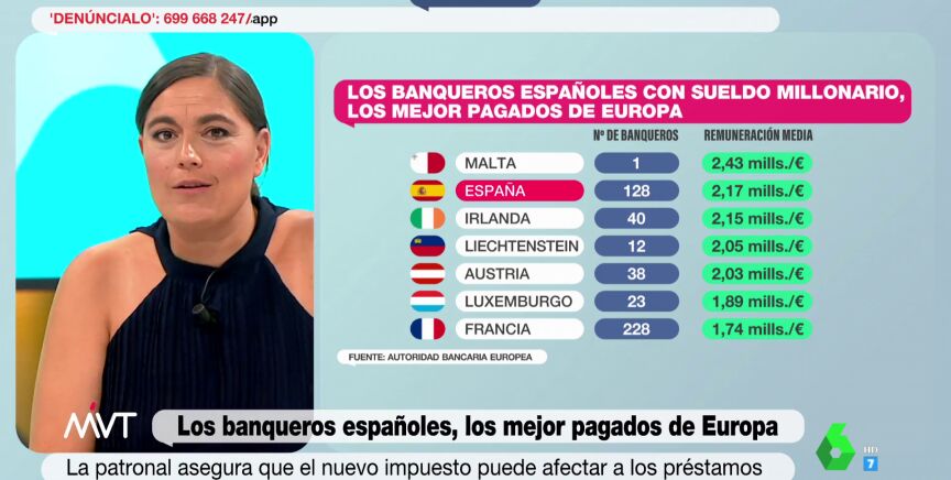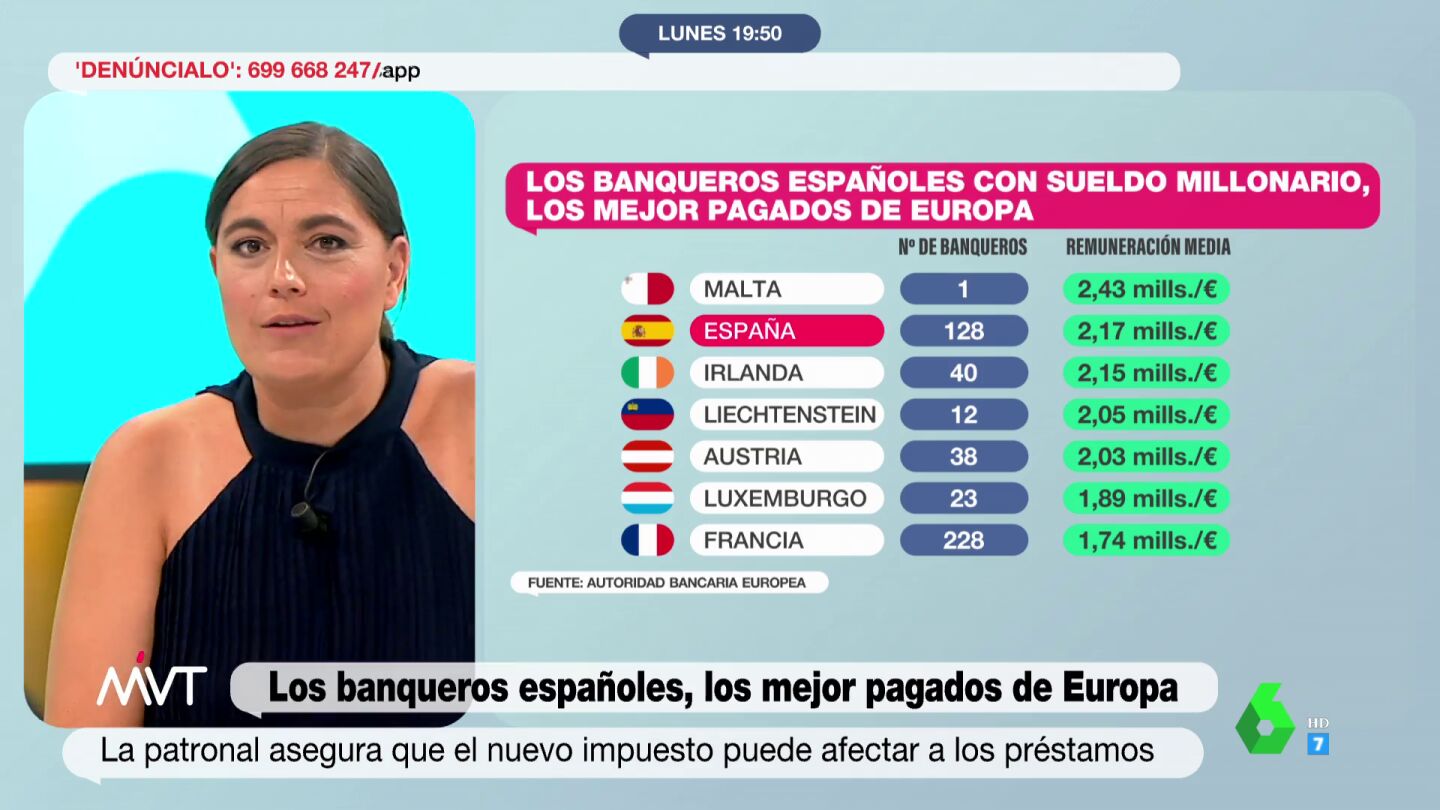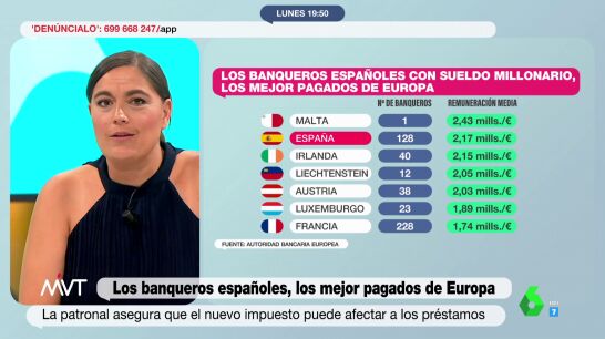 Pese a esta situación, desde la patronal advierten de que el nuevo impuesto puederepercutir en los préstamos ya que insinúa que los bancos no podrán atender a las necesidades de crédito si se suben los impuestos. A estas declaraciones ha respondido con dureza en Más Vale Tarde la periodista Loreto Ochando: "No tienen vergüenza ni la conocen".