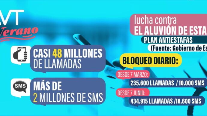 Los detalles Desde que el pasado 7 de marzo se pusieran en marcha las primeras medidas del Plan contra las estafas telefónicas y por SMS, del ministerio de Transformación Digital y de la Función Pública, se han bloqueado 47.971.400 llamadas y 2.212.950 SMS.