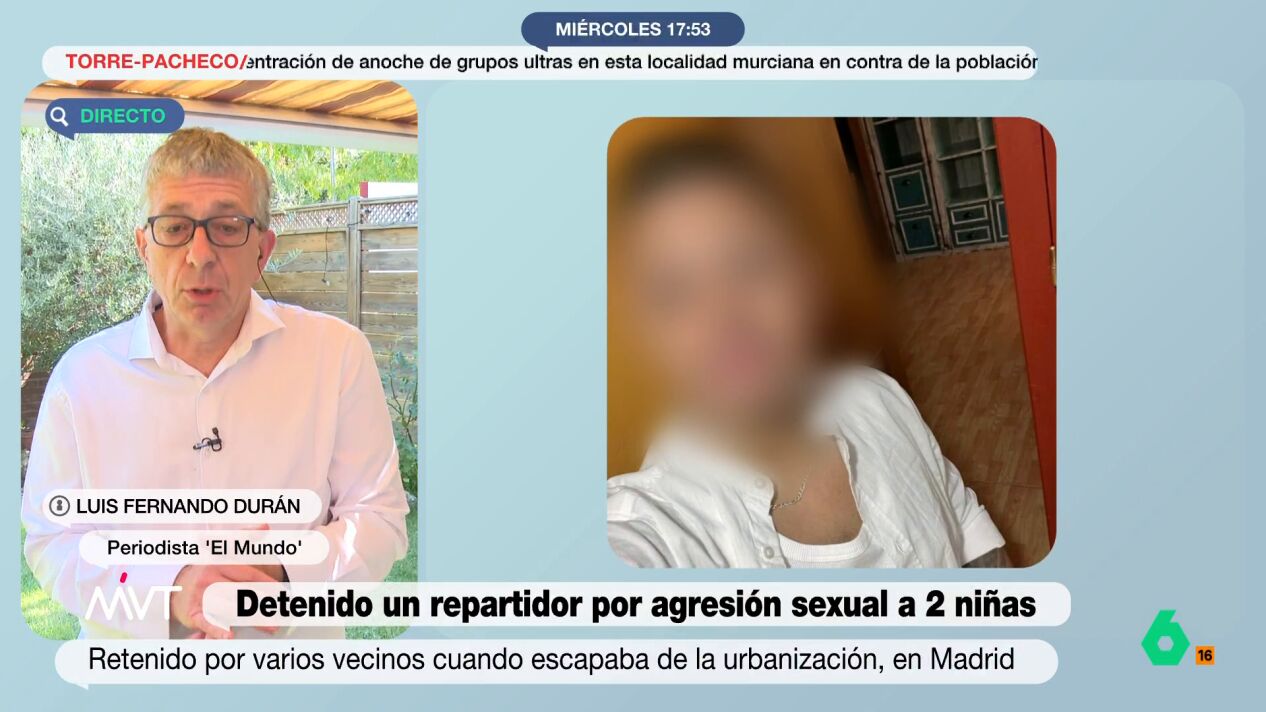 Más Vale Tarde conecta con Luis Fernando Durán, periodista de 'El Mundo' para analizar el perfil del repartidor acusado de agredir sexualmente a dos niñas en una urbanización de Montecarmelo, en Madrid.