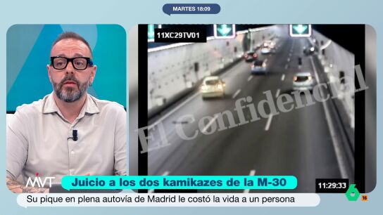 Este martes va a dar comienzo el juicio contra los dos kamikazes que causaron la muerte de un hombre en la M30, en Madrid. Como cuenta Iñaki López, estos conductores "se picaron en esta vía de Madrid y empezaron una loca carrera a 170 kilómetros por hora en un trayecto donde la velocidad máxima son 80 kilómetros por hora".