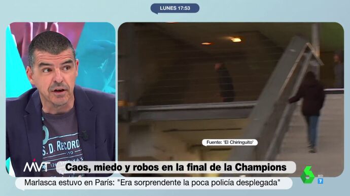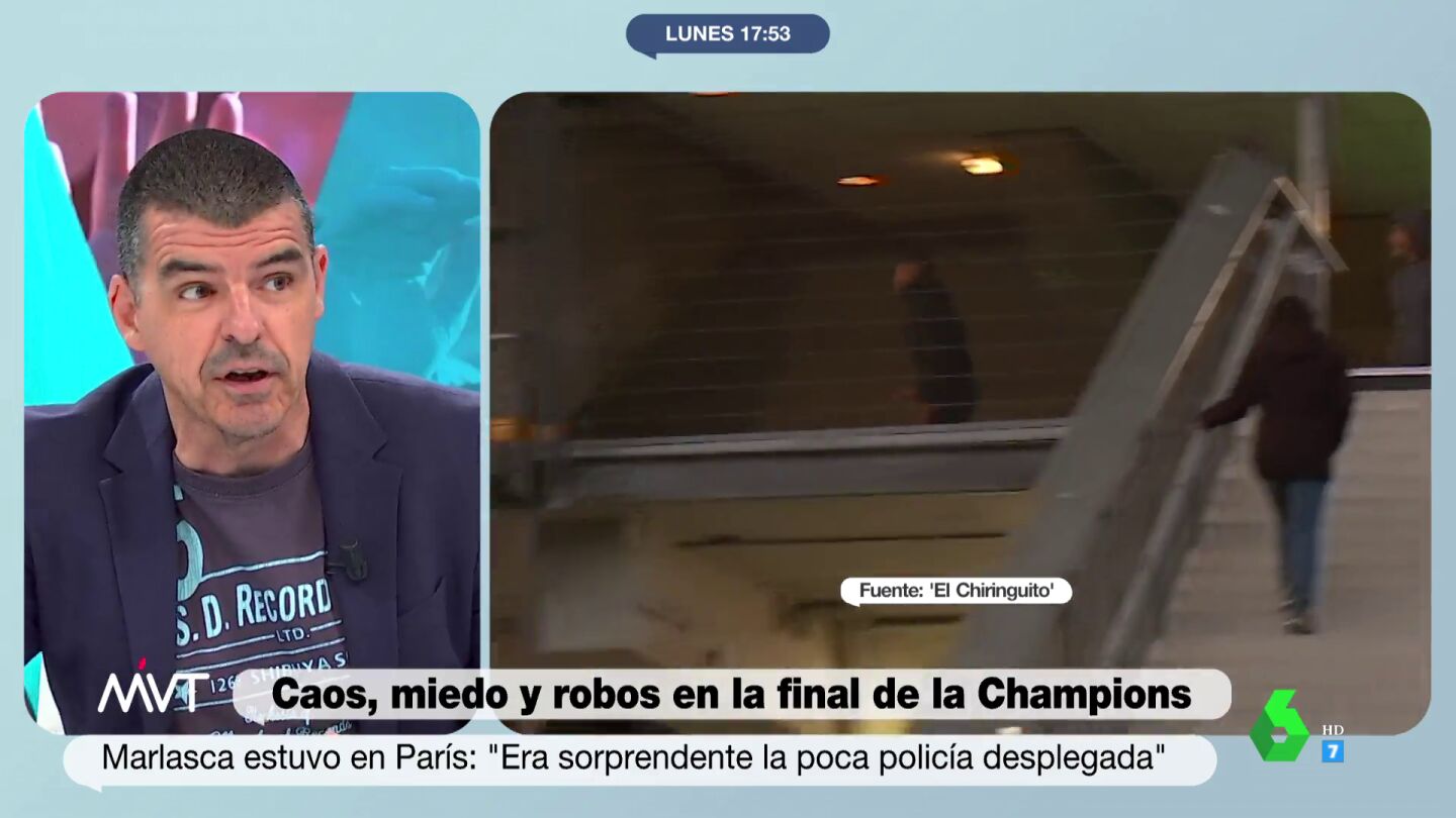Marlasca ha indicado en Más Vale Tarde que pasó al estadio pronto, pero sí sufrió los problemas de seguridad a la salida del evento: "La UEFA puso los autobuses a dos kilómetros del campo a pie. Todos los aficionados tuvimos que hacer ese recorrido en una fila en la que éramos absolutamente vulnerables, éramos pasto de todos esos delincuentes que atravesaban las filas robando y dando tirones ante la insólita pasividad de la Policía", ha aseverado.