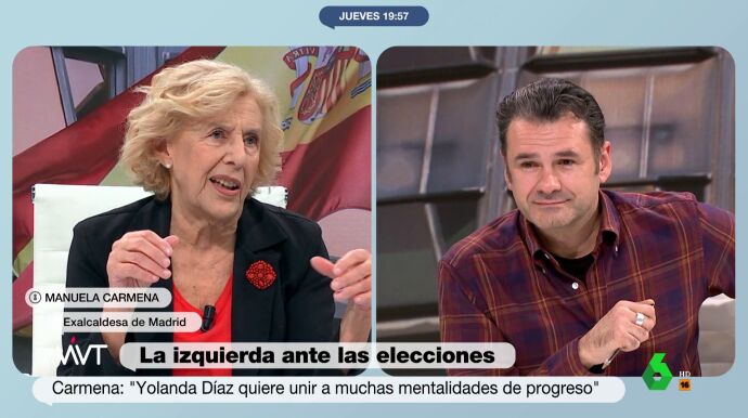 Manuela Carmena ha estado en el plató de Más Vale Tarde repasando la actualidad de estos últimos días. Iñaki López ha aprovechado la entrevista con la exalcaldesa de Madrid para preguntarle si se plantea un regreso a la política.