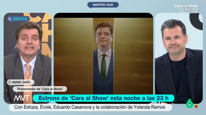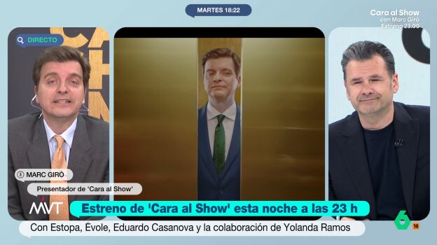 A propósito del estreno de 'Cara al Show', Marc Giró mantiene una divertida charla con Iñaki López y Cristina Pardo sobre la polémica de Eduardo Mendoza, la pansexualidad de Ferreras o los 'heteros' de laSexta.