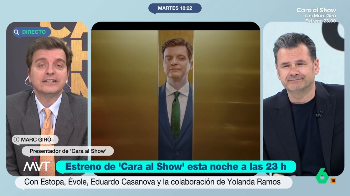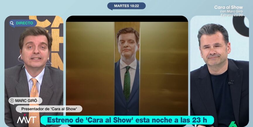 Hoy laSexta está de estreno. Esta noche a las 23:00 llega Marc Giró con su 'Cara al Show' y el presentador ha estado en Más Vale Tarde para hablar de su programa y de otros temas de actualidad.