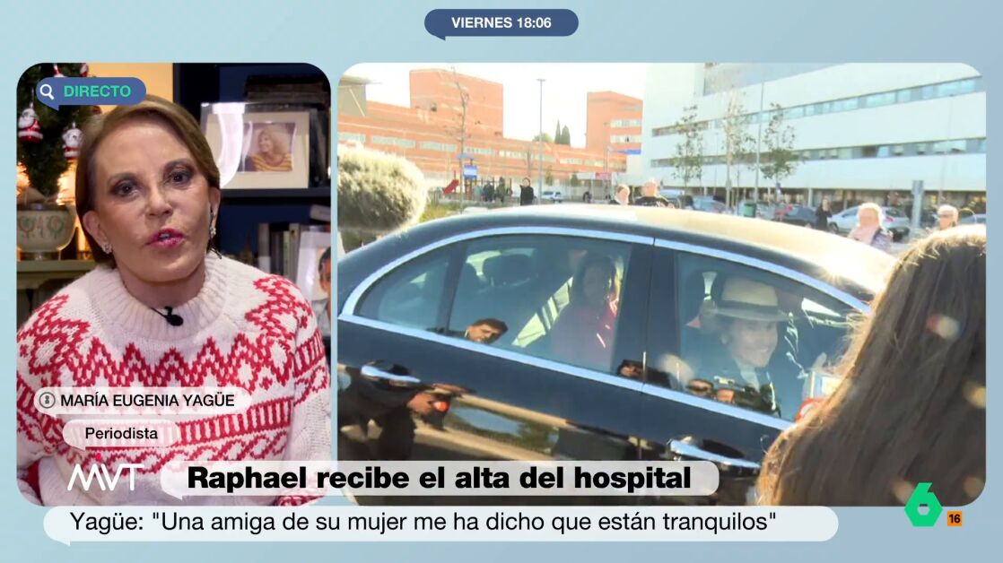Raphael ha recibido este viernes el alta médica y se ha informado que ya ha iniciado su tratamiento para el linfoma cerebral que le han detectado. Esto ha hecho que algunos contemplen la vuelta a los escenarios del artista, algo que condiciona la periodista María Eugenia Yagüe a una buena recuperación.
