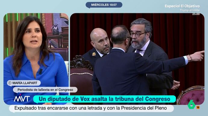 "Creo que ha sido un salto cualitativo muy negativo, porque habíamos visto muchos insultos y mucha tensión en el hemiciclo", comenta María Llapart, a la que llamó la atención al ver en directo cómo el diputado de Vox bajaba de su escaño, atravesaba el hemiciclo y "se atreve a acceder a la mesa presidencial".