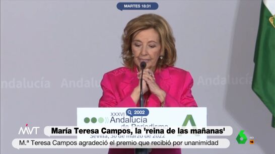 En el día de la muerte de una de los rostros más conocidos de la televisión María Teresa Campos, en Más Vale Tarde hacen repaso de algunas de los momentos más destacables de la comunicadora y resalta una de sus últimas intervenciones públicas. Concretamente, en una entrega de premios celebrado en Andalucía el 30 de marzo de 2022, donde se le otorgó el Premio al Periodismo, la comunicadora se quejó de su falta de trabajo.