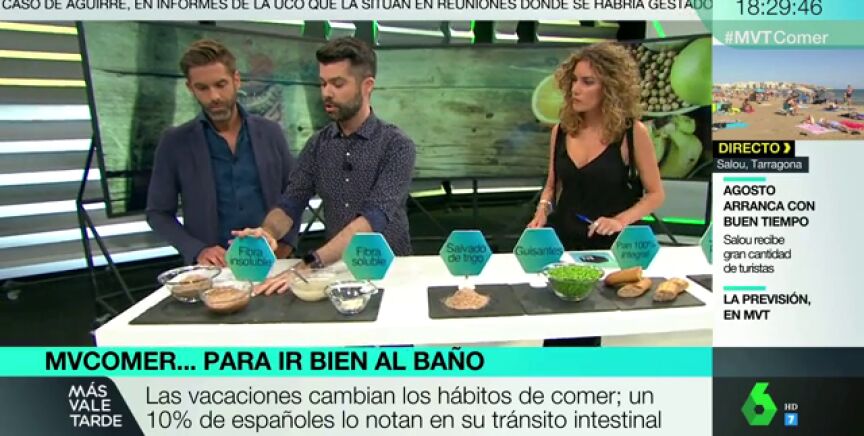 El nutricionista Luis Alberto Zamora repasa en Más Vale Tarde las recomendaciones y los alimentos indicados para regular el tránsito en verano, una época en la que los hábitos alimenticios cambian de manera notable, algo que nota el 10 % de los españoles.