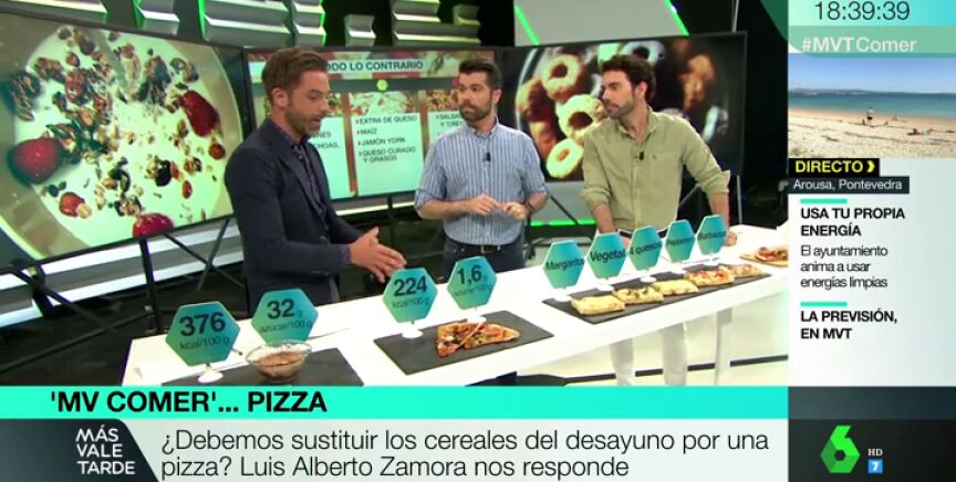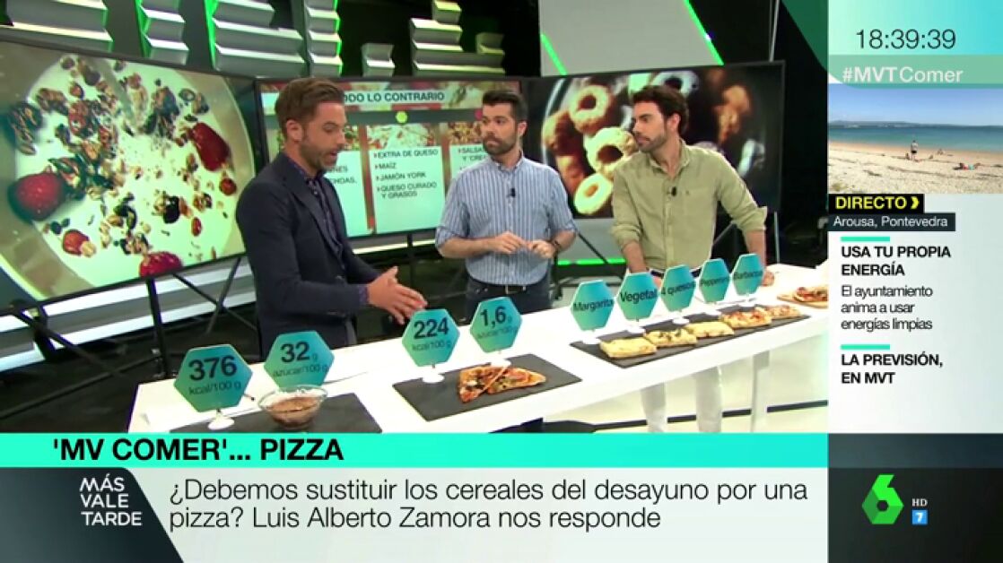 El nutricionista Luis Alberto Zamor matiza en Más Vale Comer esta afirmación: aunque, si comparamos calorías y cantidad de azúcar, tiene menos la pizza, la realidad es que ninguna de las dos opciones sería un desayuno correcto, ya que ambos son alimentos ultraprocesados.