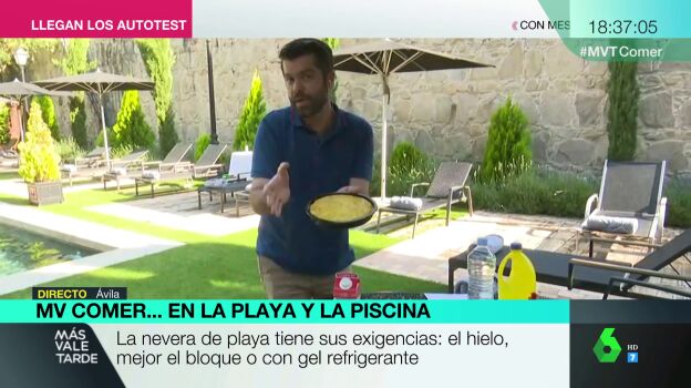 - La tortilla: aunque es un alimento muy popular como picoteo en la playa, el experto apunta que él la dejaría en casa. "No cuesta nada evitar comerla y no jugártela si no esta bien cuajada para no coger una salmonelosis", advierte.