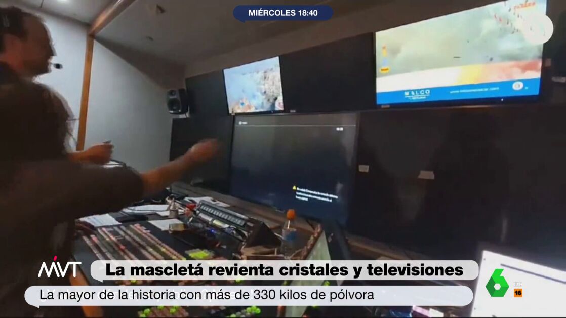 Fue tal el estruendo que provocó la mascletà que reventó cristales y televisiones. La explosión afectó a la retransmisión que estaba realizando la televisión pública, À Punt, tras dejar sin señal los monitores de la realización.