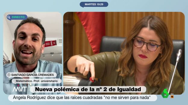 En este vídeo, Santiago García Cremades, matemático y profesor de la Universidad de Elche, analiza la polémica de la número dos de Igualdad, Ángela Rodríguez 'Pam', que asegura que "las raíces cuadradas no me sirven para nada".