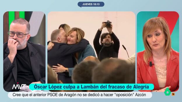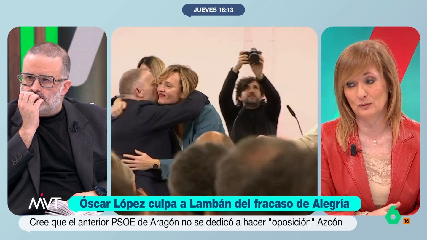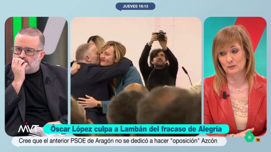 Mayte Alcaraz recuerda que Lambán, en su libro, "reconoce y cuenta que tanto Santos Cerdán y Pilar Alegría le hicieron la vida imposible en los últimos años para robarle la hegemonía del PSOE en Aragón". La periodista considera que las declaraciones del ministro son "una escapada absolutamente indignante por parte de un responsable público".