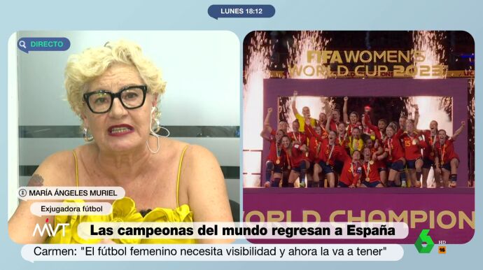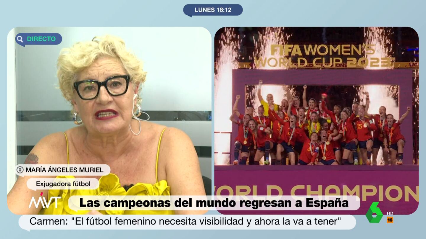 María Ángeles Muriel, exjugadora de fútbol y madre de la periodista Loreto Ochando, ha hablado en Más Vale Tarde sobre la victoria de la selección femenina en el Mundial de Fútbol y ha lanzado un mensaje a las niñas que quieren ser futbolistas: "Lo primero que les diría es que hagan oídos sordos a lo que les digan", ha destacado la deportista.