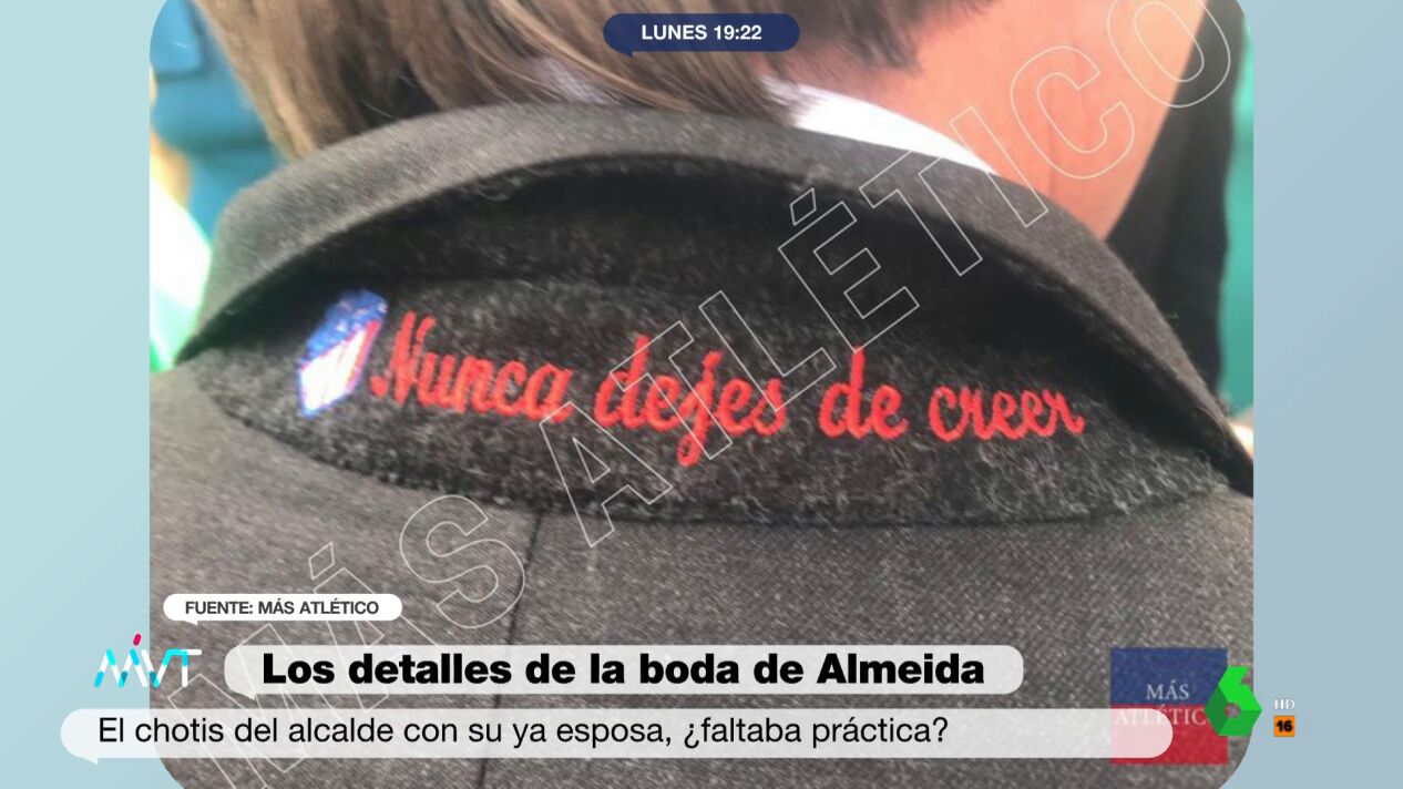 El mensaje oculto en el traje de novio de Almeida en homenaje al Atlético de Madrid