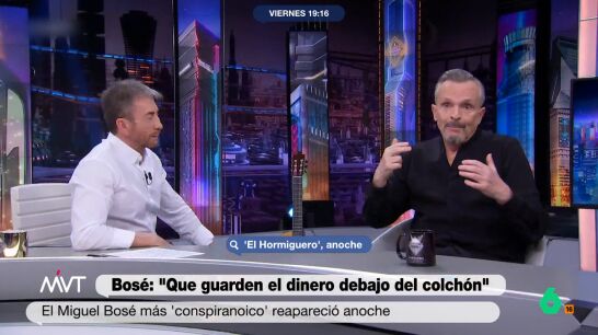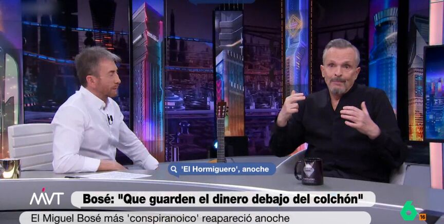 Miguel Bosé ha sido el último invitado de 'El Hormiguero'. El cantante sufrió un grave problema de salud que hizo que perdiera su voz. Este problema, como explicó a Pablo Motos, tuvo su origen en una infección en una muela y, como explica María Lamela, "le llegó a afectar a los intestinos".