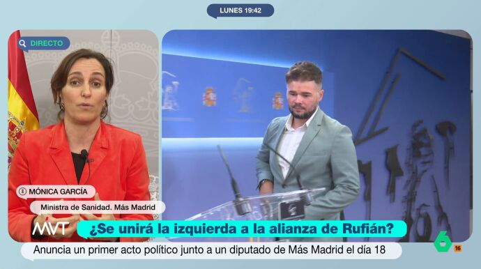 La líder de Más Madrid y ministra de Sanidad, Mónica García, ha afirmado que desconoce si la vicepresidenta segunda del Gobierno y líder de Sumar, Yolanda Díaz, está amortizada, aunque sí ha respaldado "proponer un horizonte esperanzador" con una alianza a la izquierda del PSOE como la propuesta por Gabriel Rufián (ERC), que en cambio ya han rechazado IU, EH Bildu y BNG.