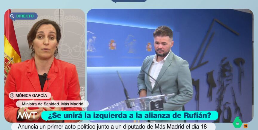 La líder de Más Madrid y ministra de Sanidad, Mónica García, ha expresado su respaldo a la propuesta de una alianza a la izquierda del PSOE, similar a la de Gabriel Rufián, aunque IU, EH Bildu y BNG la han rechazado. García ha destacado la importancia del arraigo territorial, ejemplificado por los resultados de CHA en Aragón y Más Madrid en la capital, y ha enfatizado la necesidad de construir un espacio estatal para una política progresista unificada. Aunque no ha opinado sobre el liderazgo de Yolanda Díaz, ha subrayado la importancia de una estructura robusta y fraterna para las fuerzas progresistas.